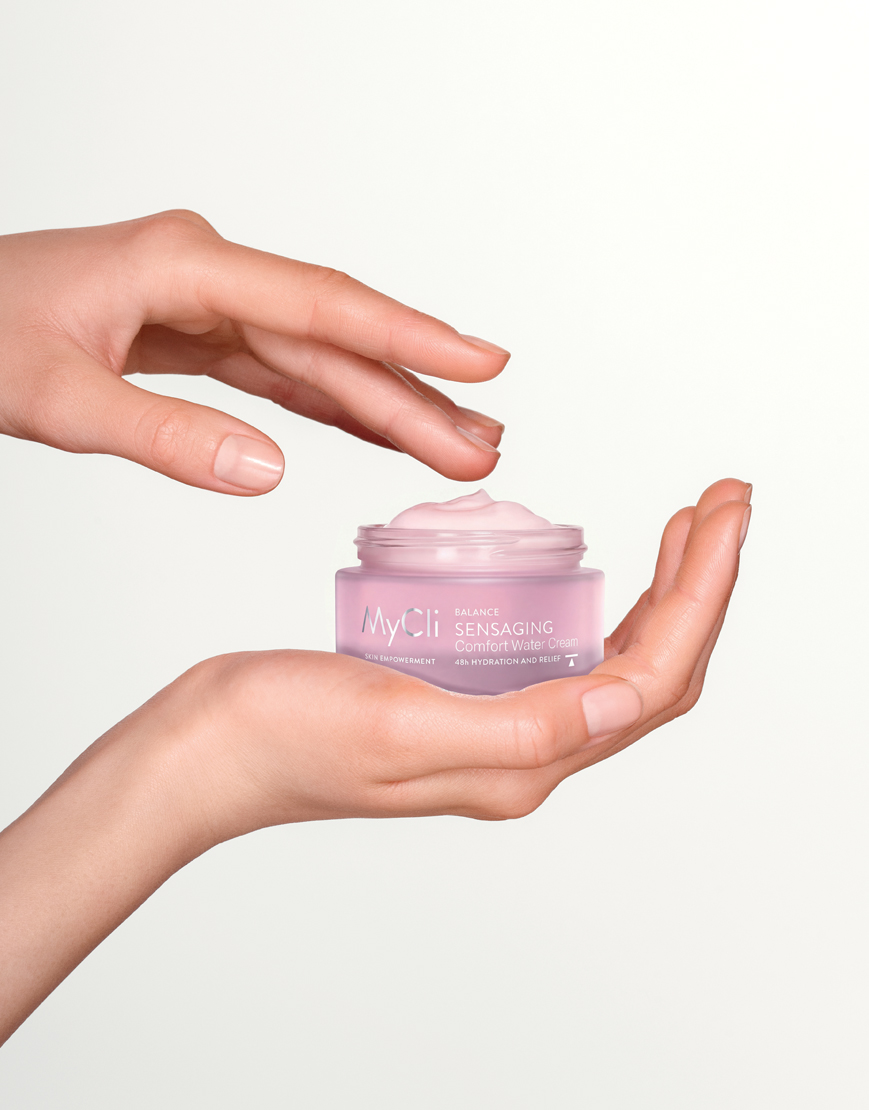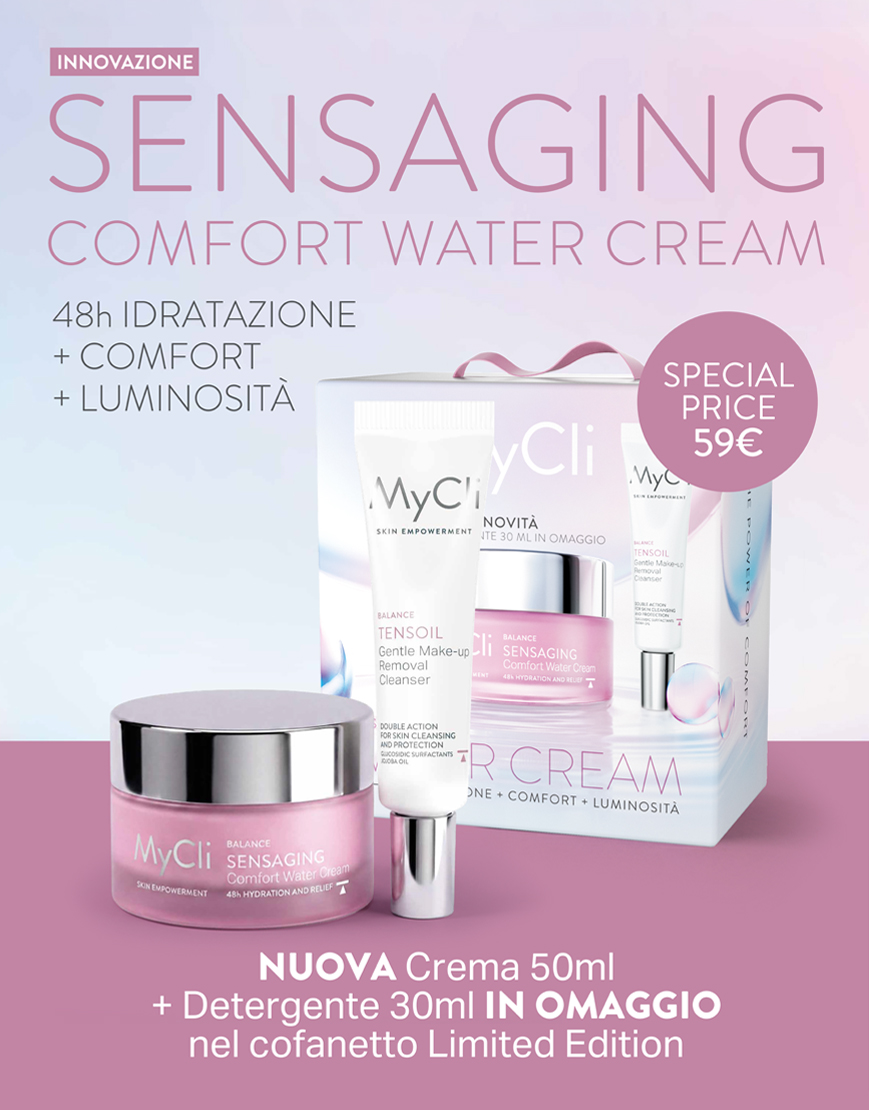 Sensaging Water Cream è una ricarica d’acqua per la pelle disidratata e stressata. La sua formula combina un reticolo di ingredienti idroscopici – acido ialuronico, pullulani e alginati – e un blend di attivi idratanti – serina, urea e trealosio – in grado di reintegrare gradualmente l’acqua negli strati superficiali della pelle e preservare le naturali difese della barriera cutanea per 48h. La formulazione è arricchita di Aquabiome e Indirubin, due molecole che aumentano la soglia di tolleranza della pelle per lenire, calmare e rivitalizzare la cute. Giorno dopo giorno, la pelle disidratata e sensibilizzata ritrova comfort, radiosità e morbidezza. La sua texture in crema gel, leggera e rinfrescante, garantisce un’applicazione scorrevole che fin dalle prime applicazioni dona risultati evidenti.