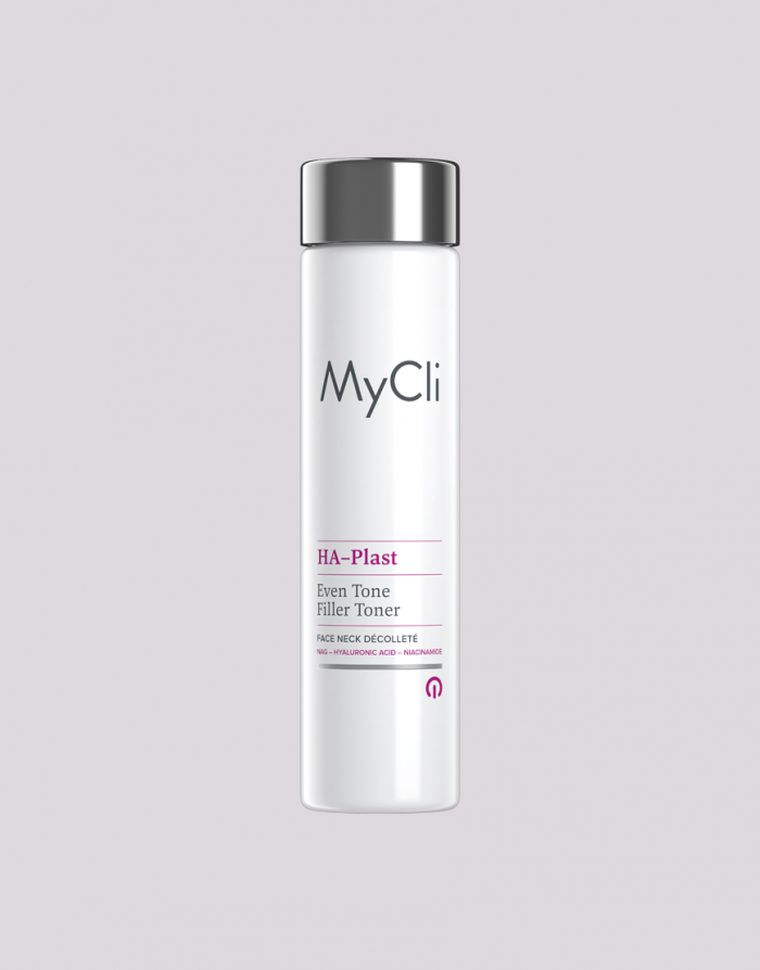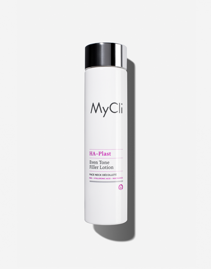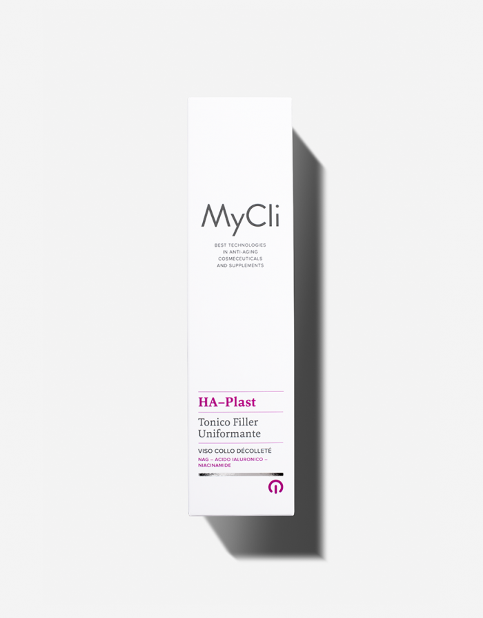 MyCli HA–Plast Lozione è un trattamento che completa la detergenza e prepara la pelle all’applicazione dei prodotti successivi. La sua formula rilancia la produzione di acido ialuronico endogeno donando morbidezza e idratazione alla cute e contrasta la pigmentazione irregolare per un colorito sano e uniforme. Il veicolo idrofilo a rapido assorbimento garantisce la perfetta conclusione della pulizia quotidiana del viso, collo e décolleté prima dell’applicazione del protocollo anti-aging indicato e favorisce un’ottima penetrazione degli attivi. Tecnologia micromolecolare integrata a base di NAG, acido ialuronico e niacinamide.